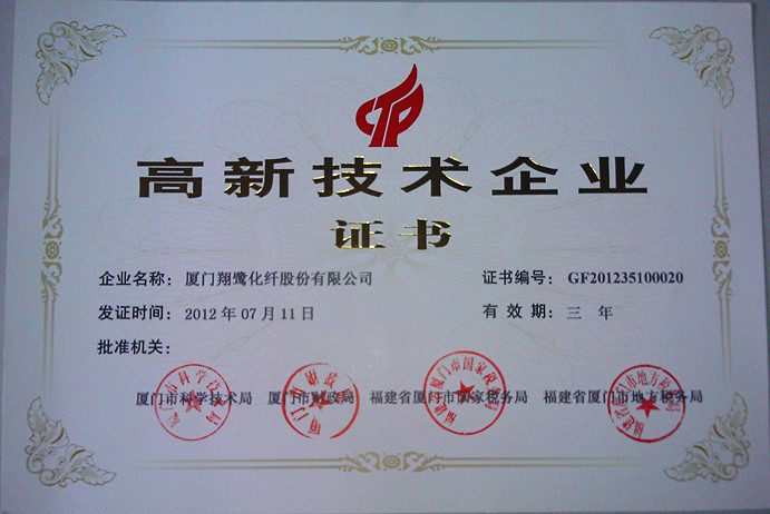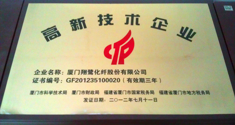 祝賀翔鷺化纖榮獲“高新技術(shù)企業(yè)”“納稅特大戶”稱號根據(jù)《高新技術(shù)企業(yè)認(rèn)定管理辦法》和《高新技術(shù)企業(yè)認(rèn)定管理工作指引》有關(guān)規(guī)定及全國高新技術(shù)企業(yè)認(rèn)定管理工作領(lǐng)導(dǎo)小組辦公室《關(guān)于廈門市2012年第二批高新技術(shù)企業(yè)復(fù)審備案申請的復(fù)函》現(xiàn)確認(rèn)廈門翔鷺化纖股份有限公司為高新技術(shù)企業(yè),頒發(fā)“高新技術(shù)企業(yè)證書”授予“高新技術(shù)企業(yè)”稱號。