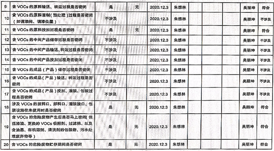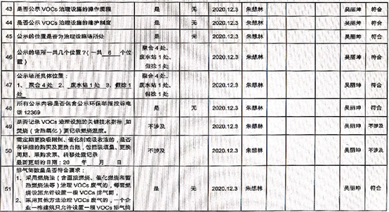 廈門市揮發(fā)性有機(jī)物污染防治企業(yè)自查表 (2020年 第四季度)